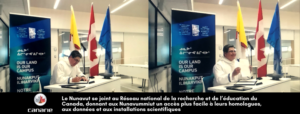 CANARIE l’a annoncé aujourd’hui : le Nunavut fait désormais partie du Réseau national de la recherche et de l’éducation (RNRE). Ceci amorce le processus qui connectera le territoire au réseau CANARIE, lequel relie les réseaux provinciaux et territoriaux entre eux et au reste de la planète. Le raccordement s’effectuera par le biais du Collège de l’Arctique du Nunavut, l’organisation hôte. Le Nunavut était le chaînon manquant dans le RNRE canadien. Ce formidable développement a été souligné le 28 août au Collège par une cérémonie de signature officielle. Avec le Nunavut, le RNRE canadien est désormais entier : il rassemble les treize provinces et territoires qui sont ses partenaires et a accompli la mission que lui avait confiée le gouvernement fédéral, créer un réseau pancanadien de la recherche et de l’éducation.