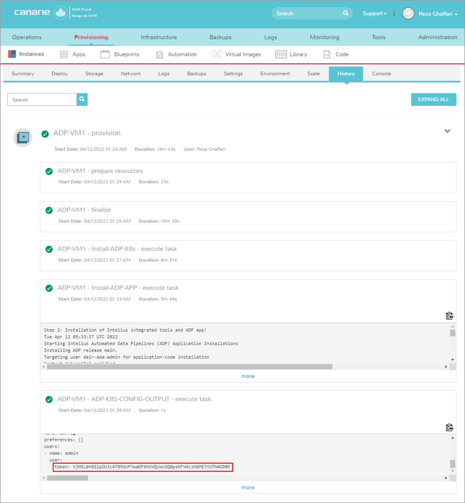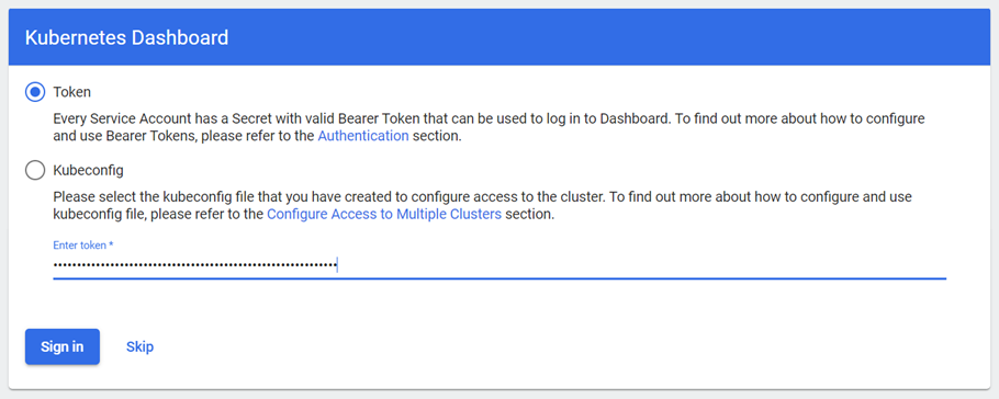 Copy the token at the end of the BoosterPack install log (highlighted in the image above). This token will be required later when logging in to the Kubernetes dashboard. And you can also obtain this token from the BoosterPack application server using the following command: