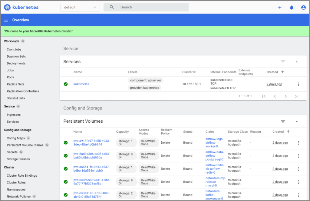 Note: Except for Kubernetes dashboard, you don’t need to execute the SSH command for the Airflow Web UI or the other web interfaces which have been deployed as part of this BoosterPack.