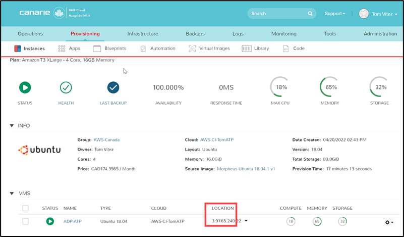 Replace “key_file” with the private key of the SSH key pair selected in the parameter configuration form and replace “Public_IP” with the IP Address value obtained from the CloudFormation output.