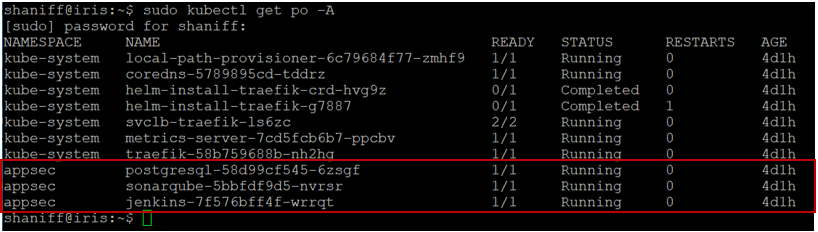 You should see three pods under the appsec namespace with the Running status.