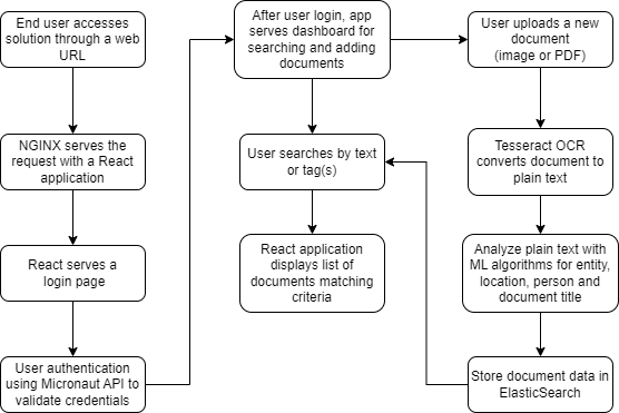 This Sample Solution, from the Automated Document Classification and Discovery BoosterPack, demonstrates how FormKiQ used Micronaut, Apache Kafka, Tesseract Optical Character Recognition (OCR), Elasticsearch, and Natural Language Pprocessing (NLP) to automatically categorize and tag documents based on their content, allowing users to search and retrieve documents quickly.