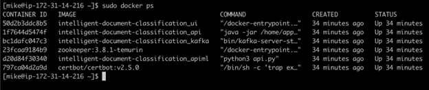 The solution also uses a single Docker instance to manage the UI, Micronaut API, and Machine Learning (ML) API. The ML API can use a large number of server resources depending on the size of the documents being processed. For your use case, you may want to run a second instance of this solution and only run the ML API on the second instance. You will need to make minor modifications to the docker-compose-prod.yml to configure the API_ML server.