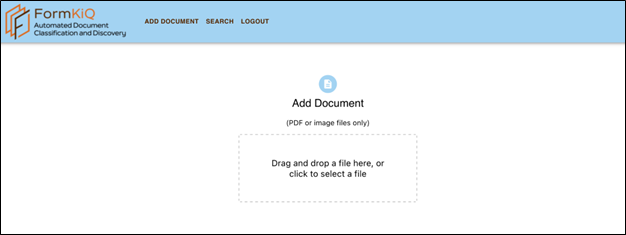 The Add Document page allows you to upload one or more documents. Once uploaded, the documents will be converted to plain text via optical character recognition, and then machine learning algorithms will generate entity tag(s) and the document title.