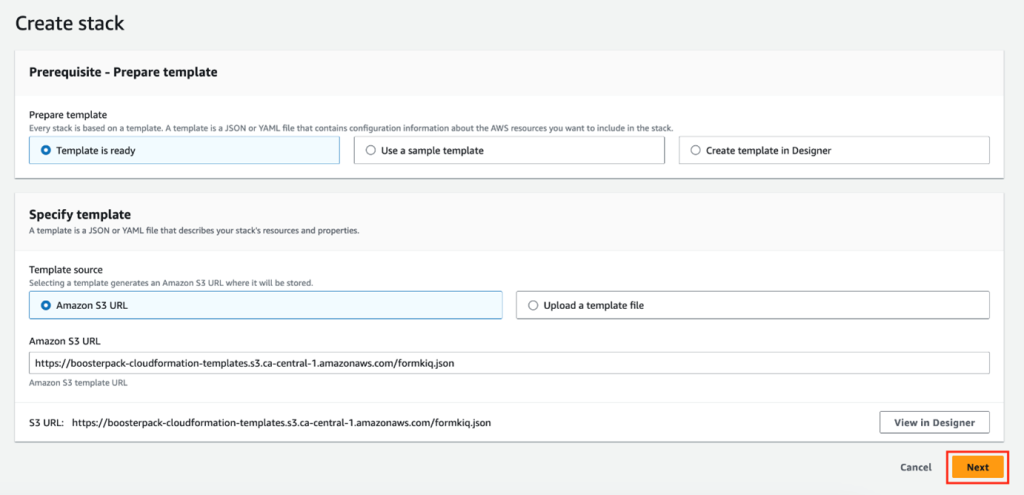 Click DEPLOY to launch the BoosterPack using AWS CloudFormation stack.