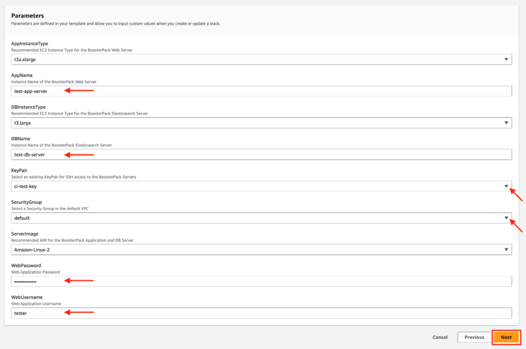 Also configure your web application password and username by filling the WebPassword and WebUsername fields respectively. The rest of the form is completed using the drop-down options. Please note that other parameters (such as “ServerImage”, “AppInstanceType” and “DBInstanceType”) are pre-configured and cannot be modified.