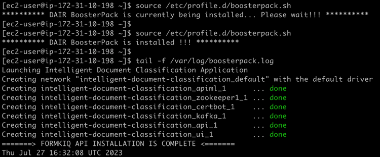 Once successfully logged in to the application server, you can monitor the status of the deployment automation script with the following commands: