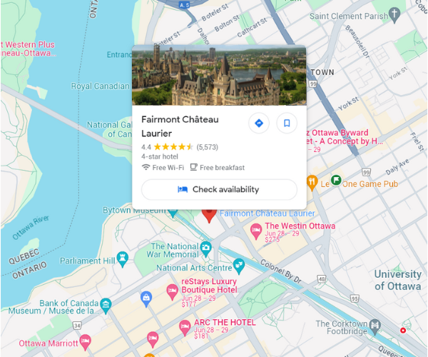 Several options for self-parking are available within a short walk from the Fairmont Chateau Laurier.