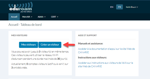 Voici comment ouvrir une séance sur le portail afin de créer et de gérer des comptes sur le Service eduroam pour les visiteurs (eVA).
