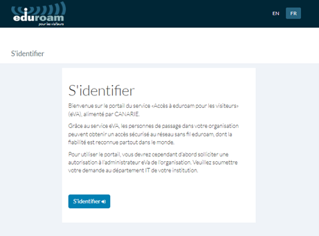 1re étape : Allez à https://eva.eduroam.ca et cliquez S’identifier.