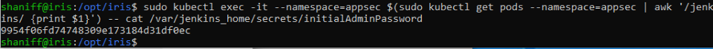 2. Pour récupérer le mot de passe Admin par défaut de Jenkins, revenez à la console de la MV Argus (séance SSH) et exécutez la commande suivante :