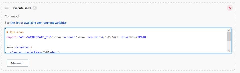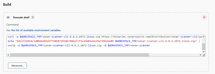 Un encadré s’affichera avec une commande sonar-scanner que l’interpréteur Linux exécutera sur le pipeline CI (Jenkins).