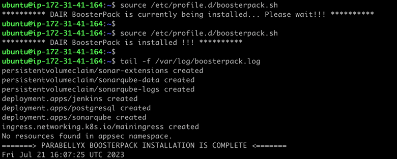 Une fois la connexion avec le serveur de l’application établie, vous pourrez suivre le déploiement du script d’automatisation avec les commandes que voici :