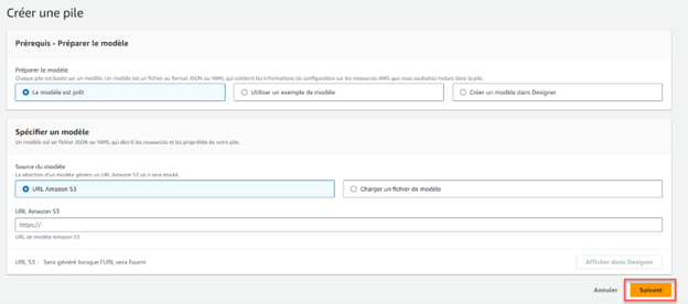 Cliquez SUIVANT pour passer à la troisième étape de CloudFormation. Cette partie concerne la configuration d’options avancées ou supplémentaires, inutiles dans le cas qui nous intéresse. Cliquez simplement Suivant au bas de la page pour sauter cette étape et passer à la quatrième et dernière de CloudFormation.