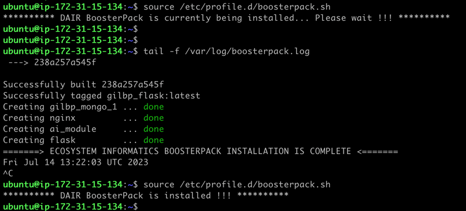 Once successfully logged in to the application server, you can monitor the status of the deployment automation script with the following commands: