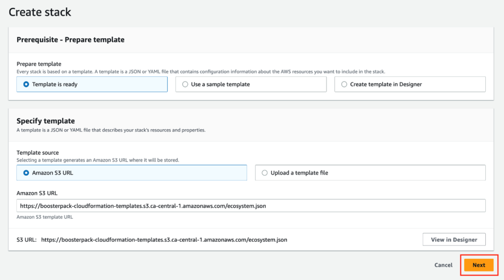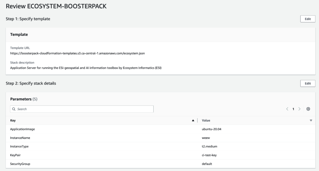 From the DAIR BoosterPack catalogue page, go to the Ecosystem Informatics section and click DEPLOY to launch the BoosterPack using AWS CloudFormation stack.